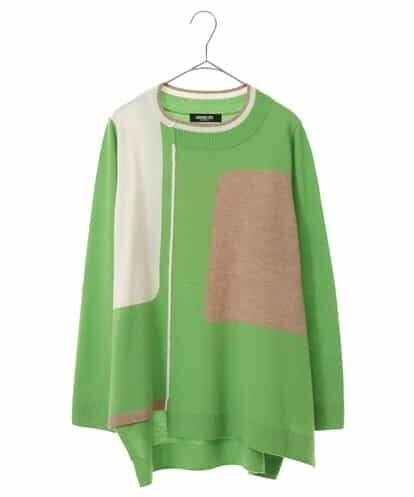 上質なウールをブレンドした柔らかく暖かな風合いが魅力のデザインニット。カラーブロック状に配した鮮やかなカラーリングがスタイリングを華やかにしてくれます。裾に段をつけたカッティングや切り替えがアクセントに。フレアシルエットの流れるドレープもポイントです。ヒップラインまでかかる丈感がりラクシーな一枚に仕上げています。同ラインで仕立てた【RBFAI61230】もおすすめです。model:H167 B80 W59 H85 着用サイズ:M