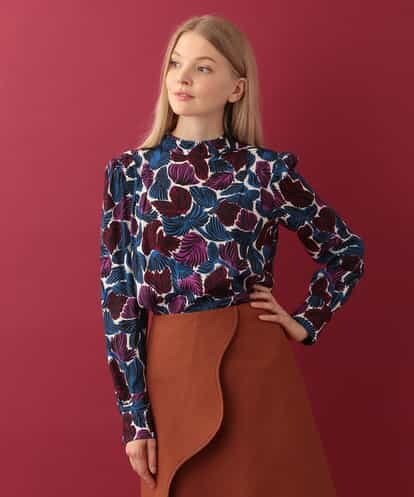 <数量限定アイテム> 70年代のムードを表したリーフプリントを上質なシルクにプリントしたプリオーバーブラウス。 ハンドタッチで描かれた大き目の柄と深みのあるカラーは70年代に一世を風靡した"オジー・クラーク"からインスパイアされています。 ショルダーラインに取ったタックが作り出す美しいドレープに、目を惹くデフォルメされた柄がスタイリングを華やかにドレスアップしてくれるブラウスです。model:H170 B81 W59 H88 着用サイズ:M