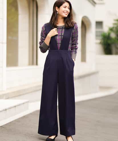 ◆今季注目のサスペンダーデザイン◆裏起毛素材を使用。トレンドのワイドサスペンダー付きパンツ(取り外し可能)。ハイウエストのシルエットでスタイルアップ。インナーにハイゲージニットを合わせて今年らしいスタイリングに※34(XSサイズ)・42(XLサイズ)はWEB・一部限定店舗での販売です。
