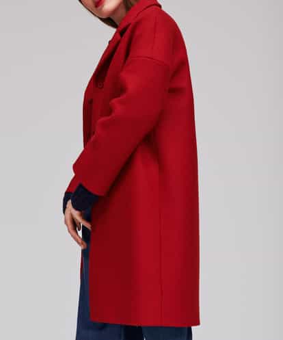 重厚感のある上質なメルトンで仕立てたコート。季節感のある表情豊かなテクスチャを活かしたムダを省いた洗練されたデザインに、肩を落としたゆったりとしたシルエットがエレガントさを演出してくれる一着です。特徴的な袖付けや、テーラードカラーがポイントになったモードなデザインコートに仕上がっています。フロントはシルクスナップですっきりとバランス良くまとめました。※裏地付き