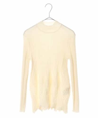 [ジャンニロジュディチェSサイズ]ヘムのカッティングや編み地がウエストからヒップにかけてアクセントをもたらせてくれるニットトップ。身体にフィットしたリブニットなので、ジャケットやカーディガンのインナーとしても最適で、裾からヘムのデザインをのぞかせた着こなしもおすすめなアイテムです。