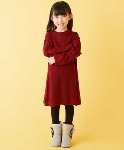 [140-150]ケーブルスリーブニットワンピース レッド 150