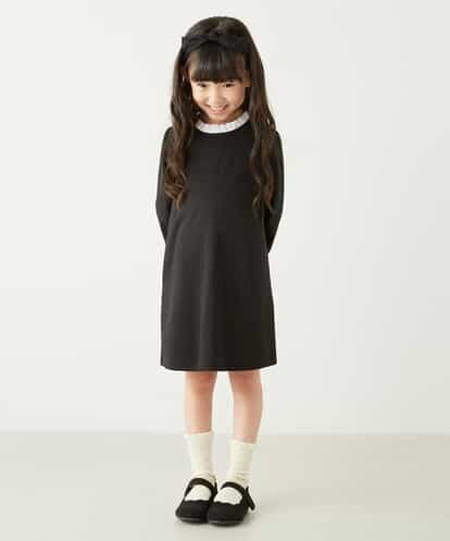 [100-130]フリルネックAラインワンピース[WEB限定サイズ] ブラック 110