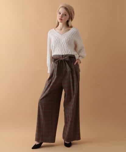 チェック柄ハイウエストパンツ。ブリティッシュトラッドなカラーチェック柄が、ゆったりとしたワイドシルエットにマッチした一着です。ワイドなウエストベルトに、付属の共布のベルトでウエストマークすれば、メリハリのあるスタイリングが決まります。 model:H170 B81 W59 H88 着用サイズ:M