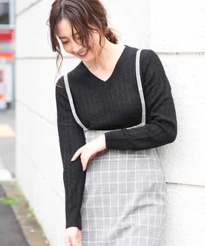 【ドラマ着用】Vネックケーブルニット[WEB限定サイズ] ブラック 34