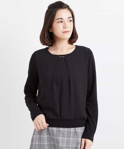 透け感のあるシフォン素材を前身頃にあしらったカットソー。 ネックレスをつけたようなゴールドモチーフがさりげない存在感を放ちます。 ジャージ素材なので伸縮性があり、さらっとした着心地もうれしいポイント。 パンツでもスカートでも合わせやすい丈感で、カーディガンやジャケットの インナーとしても相性が良く、着回し力のある万能アイテムです。 model:H160 B81 W58 H81 着用サイズ:M