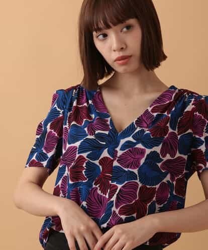 リーフプリントVネックブラウス IMPORTED ネイビー 38
