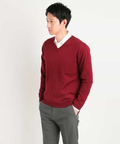 【洗える】Vネックニット[WEB限定サイズ] ワイン 50