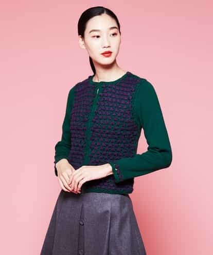 ドットのモチーフをかぎ針で編んで仕上げたクラフトテクニックニット。モチーフをかぎ針で配色で仕上げ前身頃に大胆に仕上げました。天竺編みやリブの編地に、かぎ針のなどのクラフトテクニックを駆使し、1着1着丁寧なニットジャケットに仕上がりました。1着でインパクトあるニットのため、シンプルなフレアスカートなどスタイリングをお楽しみいただけます。model:H173 B80 W58 H84 着用サイズ:M
