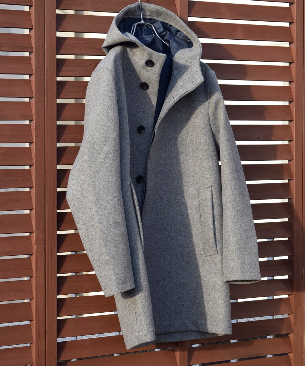MK MICHEL KLEIN HOMME 【フーディーメルトンコート】 ※少し着丈の長いコートがほしい、けど トレンチじゃないし、チェスターの気分じゃない。 新しいコートのスタイルをお探しの方に! ■デザイン メルトン素材といえば、オーソドックスでベーシックなデザインコートが多いですが 今回、MK MICHEL KLEIN hommeは「フード」に注目したミドルコートを提案。 しっかりとしたフードに、首元をやや高めに、マウンテンパーカーのような首元。 丈はミドルでいつものコートより長め。けどきれいなシルエットは必須。 ■素材 「750メルトン※」を使用することで、今まで懸念されていた「重さ」を改善。 メルトンやウールコートはリュックや、ショルダーバッグを背負うには難しい と思われていましたが、軽さのあるコートはバッグを選ばず羽織れます。 ※毛20%/ポリエステル80% ■サイズ感 ロングコートでもなく、ショート丈でもない「ミドル丈」 短すぎると下から冷気が入りそう。。長いと動きにくいしな。。 そこで、今年はミドルコートを!レジャーなシーンでも使え、もちろんビジネスシーンでも活躍。 アームはダボつかないよう、綺麗なシルエット。動きのある1日でもストレスなく着用! ■スタッフコメント 175cm/60kg 48サイズ着用 「フードのあるコートは今までメンズのイメージはありませんでしたが、 このコートは存在感あるフードと、首元がとても気に入りました! 着た瞬間とても軽いし、着心地がいい。 今回インナーは厚手のニットを着ましたが、すっきり楽に着れました。 ミドル丈。もいいですね。丁度よい長さなので、動きやすいですし、ロングコートじゃ難しい自転車なんかも乗れそうです。 リュックとも合わせやすいのが、カジュアルでもビジネスでも着る私にとってありがたいです!」