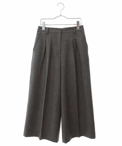 ウール混の温かみのある素材感。冬の定番のツィード素材を使用しワイドクロップドパンツ。ダブルタックのゆったりとしたヒップ周りに、ゆったりと広がるワイドシルエットがトレンド感のある一着です。センタープレスを施したモード感のある雰囲気に、ポケット口やウエストベルトにはデザインステッチをあしらいアクセントをプラスしました。同じテキスタイルで仕立てた【REHAH57210】もお薦めです。※裏地付きmodel:H167 B80 W59 H85 着用サイズ:M