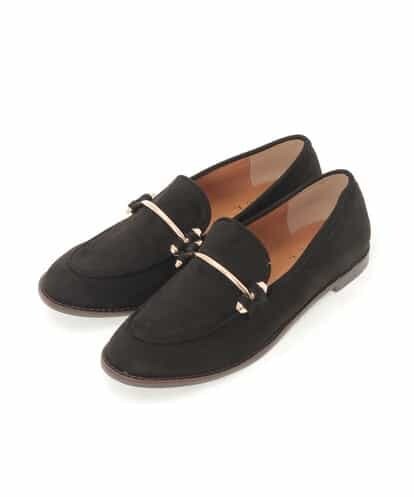 上品な質感のフェイクスエードで仕立てたローファー。今年のマストハブアイテムのローファーに、高級感のあるアクセントをプラスしてくれるメタルモチーフが輝く一足です。レトロな風合いを魅せるシューズにモダンなパーツがコーディネイトに映えるアイテムです。カジュアルからモードなスタイリングまで幅広く合わせられるのもポイントです。