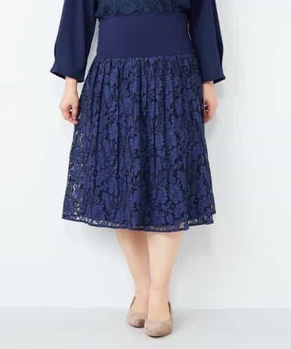【大きいサイズ】総レースが上品!膝丈レーススカート ブルー 13 eur3(エウルキューブ) レディーススカート♪フラワーモチーフの総レース。ウエストベリバン型の楽々スカート。 ソフトプリーツ・・・62235-OLHBD110845513 イトキンオフィシャル ITOKIN ONLINE STORE タブレット&スマホ&PCで買える最新ファッション通販