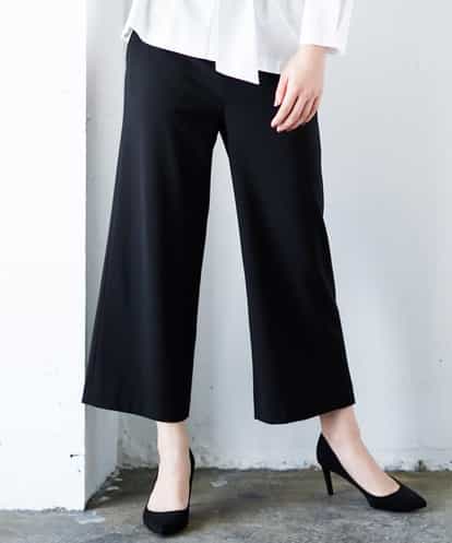 【洗える】裏起毛ワイドクロップドパンツ ブラック 36