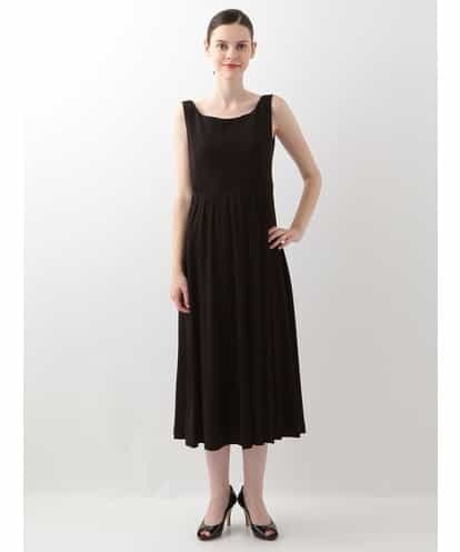 柔らかなドレープがエレガントな動きを魅せてくれるドレス。タテに沢山の切り替えを入れ、ウエストの織りになったデザインが美しい一着です。スリーブレスのすっきりとした雰囲気と、フレアの優しいフェミニンさが合わさった上品なドレスに仕上がっています。※バックファスナ?、裏地付きmodel:H170 B80 W58 H81 着用サイズ:M