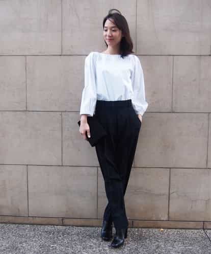 クラシカルな上品な着こなしが叶うポプリンコットンブラウス。 ポプリンはシャツ地に代表される手触りの柔らかい緻密な織物で通気性に優れた素材です。 アームホールと袖口に施した適度なボリュームがフェミニンムードをプラスします。すっきりとした広めのネックはデコルテラインを美しく見せ、フレアシルエットの女性らしい着こなしがワンランク上の着こなしを叶えます。カジュアルにもフォーマルにも活躍する一着です。model:H164 B82 W59 H88 着用サイズ:M