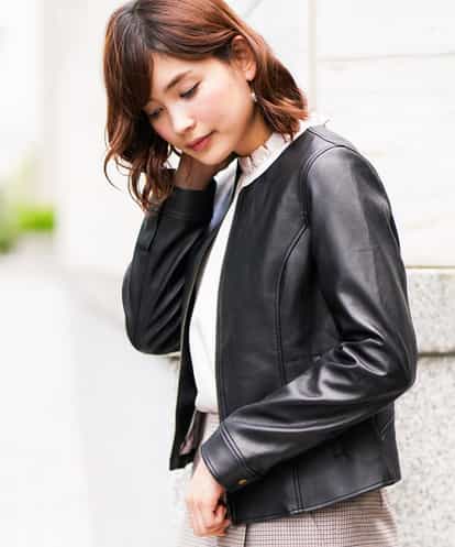 ノーカラーライダースジャケット[WEB限定サイズ] ブラック 34