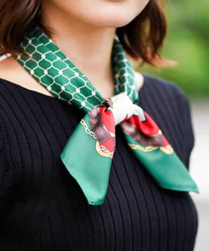 【雑誌掲載】ベルト幾何柄スカーフ グリーン 38