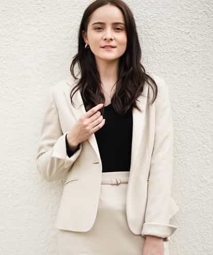 ウール100のセットアップジャケット。 シルエットを1から見直したMKこだわりのテーラードジャケット。きちんと感や着心地の良さはしっかりと残しながら、程良いきれいなウエストのシェイプと細めのラペルがシャープで今どきなシルエットを実現。ウール100の密な素材は暖かく、肌寒い季節に嬉しい。同素材のスカート、ワンピースとセットアップでご着用いただけます。※屋外での撮影は色味が多少異なる場合がございます。商品の色味は、スタジオ撮影の画像をご参照ください。 ※サンプルでの撮影となるため、実際にお届けする商品と仕様やサイズが異なる場合がございます。