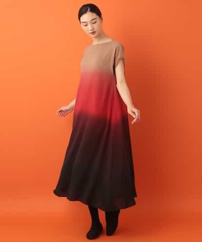 繊細な質感のテキスタイルに、美しいオンブレカラーの濃淡が映えるドレス。少ないシームで設計されたムダのない洗練されたシェイプに、広がりのあるフレアシルエットがエレガントなドレープを魅せてくれる一着です。袖下にタックを入れた特徴的なスリーブもポイントに。※裏地付きmodel:H173 B80 W58 H84 着用サイズ:M