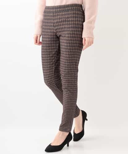 【裏起毛】千鳥格子柄ストレッチパンツ ダークブラウン 40