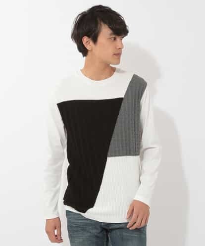 様々な編地の切り替えとカラーリングが魅力のニットプルオーバー。袖と背中部分をカジュアルなジャージー素材で切り替たファブリックのコントラストが魅力の一枚です。ジャケットやアウターのインナートップとしてもおすすめです。model:H183 C90 W73 H95 着用サイズ:L