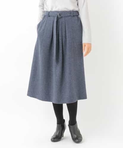 シーズナルな表情を魅せてくれる、ウール混のテキスタイルで仕立てたスカートです。フロントのセンター部分にタックを入れたゆったりと広がるシルエットに、厚みのある素材がより立体的な表情を魅せてくれる一着。縦方向に切り替えを入れたミディな丈感が、全体を重くなり過ぎずきれいにまとめてくれるバランスになっています。さり気なく光る、付属のベルトのメタルバックルもアクセントに。バックウエストはゴム仕様にし、穿き心地の良さもプラスして仕上げました。※裏地付きmodel:H167 B80 W59 H84 着用サイズ:M