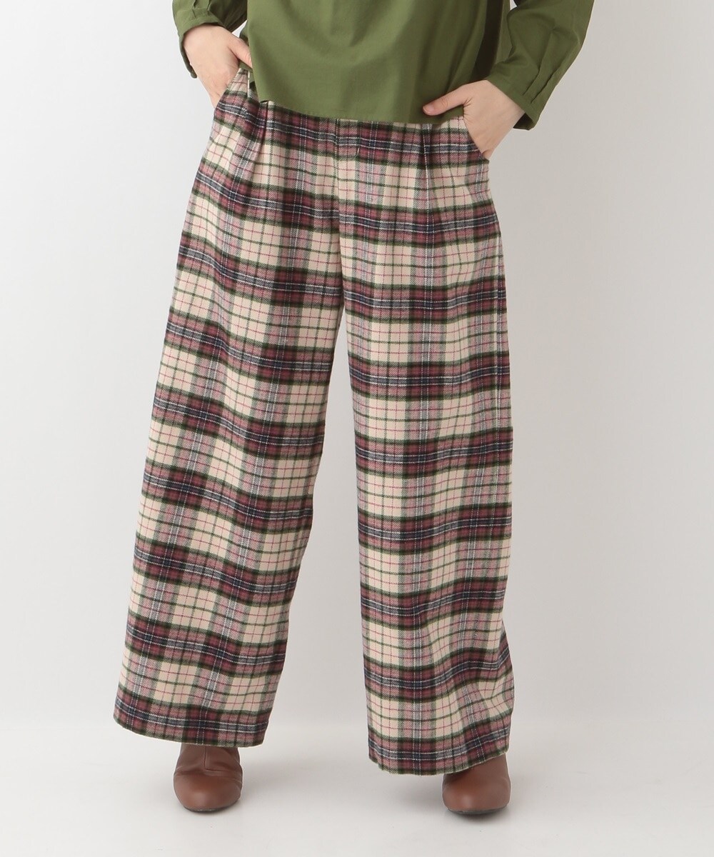 タータンチェック カラーチェックワイドパンツ アイボリー 42