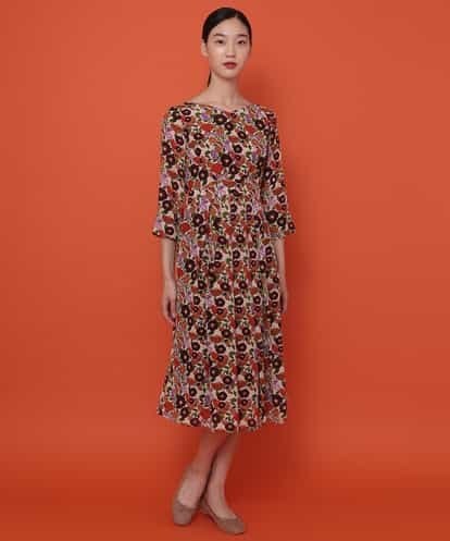 シルクの繊細な風合いのテキスタイルに、彩り鮮やかなフラワーモチーフの柄が目を惹くドレス。切り替え部分には上下に入れたタックが美しいドレープを演出。緩やかに開いた抜け感のあるネックに、広がりのあるフレアシルエットがインパクトのある色合いをフェミニンにまとめてくれます。※裏地付き、バックファスナーmodel:H173 B80 W58 H84 着用サイズ:M