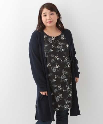 【大きいサイズ】スリットロングカーディガン ネイビー 2