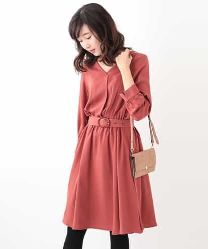 デコルテが上品に際立つVネックに、スカートの脇にタックを施し動きが出るワンピースです。 光沢のあるサテン素材で落ち感があり、上品で大人な印象です。 共布ベルトでウエストマークする事が出来るので、全身のバランスにメリハリを与えるポイントに。 膝丈で落ち着いた印象なので、通勤にも着られる一枚です。 ※スカートのみ裏地つき