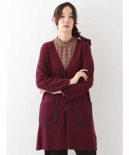 別カラーでパイピングされたフロントポケットと真ん丸なボタンがなんとも可愛らしいロングカーディガン。程よい厚みが秋口から春先まで使えるので、長いシーズン重宝するアイテム。ポップで可愛らしいデザインは一枚プラスするだけでいつものコーディネートをより華やかに演出してくれます。model:H173 B80 W60 H88 着用サイズ:40