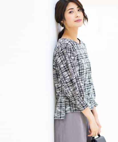 ツィードチェック柄タックカットソー[WEB限定サイズ] ブラック 40