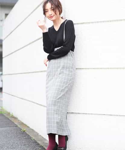 ◆トレンドのチェック柄ワンピース◆ナロータイトのサス付きワンピース。裾にはスリットが入っていて、足さばきもキレイに見せてくれます。※34(XSサイズ)・42(XLサイズ)はWEB・一部限定店舗での販売です。